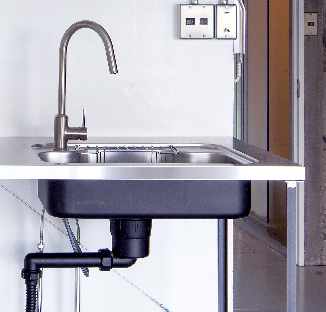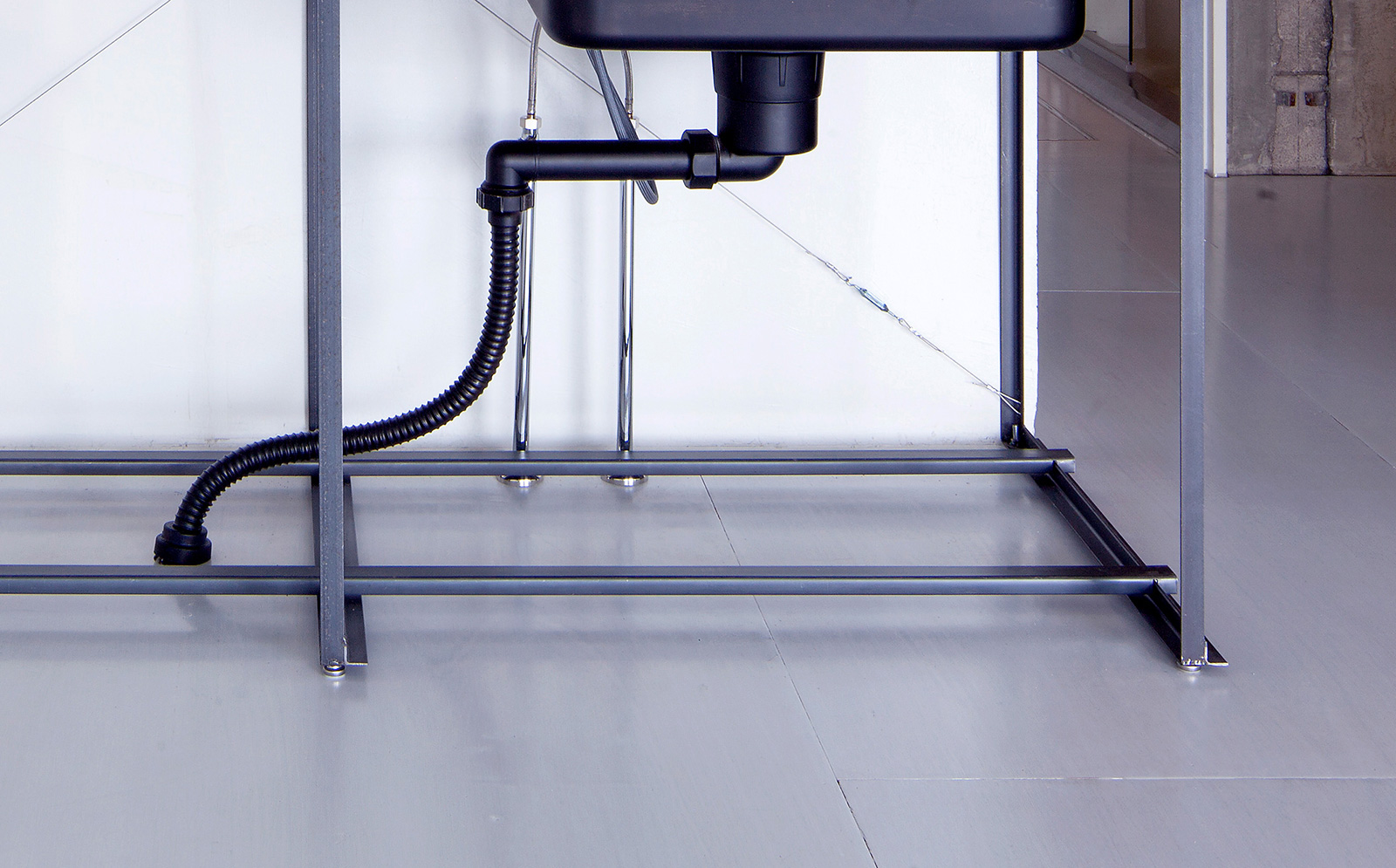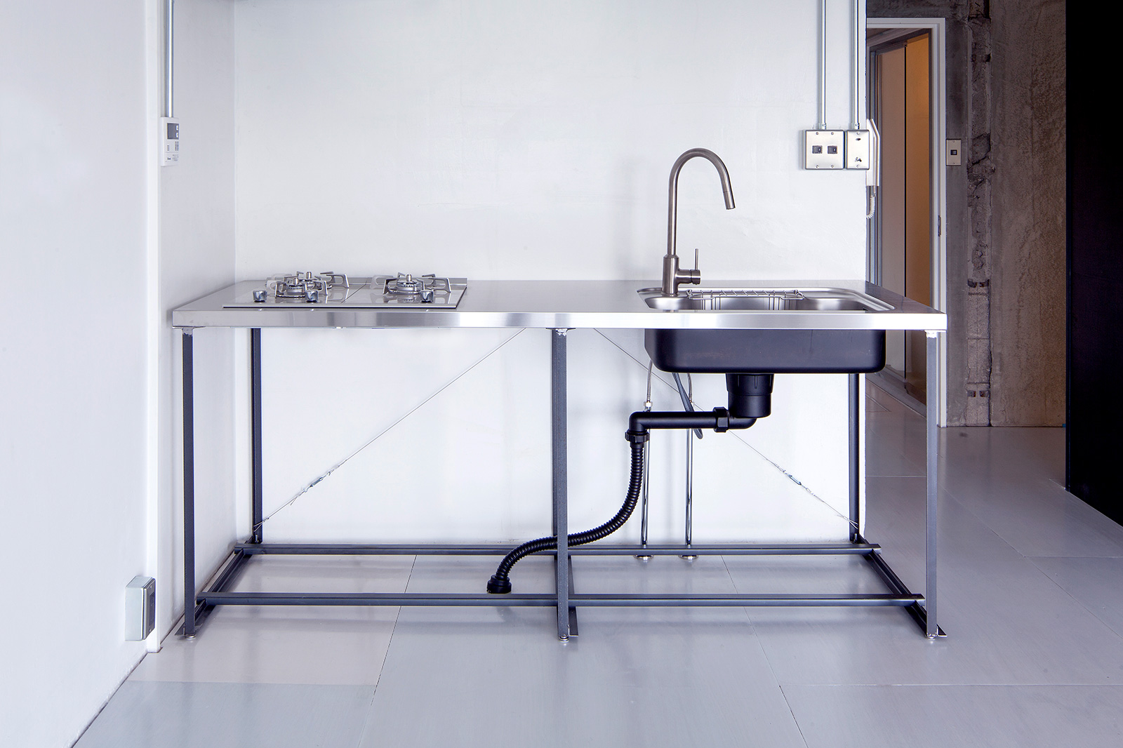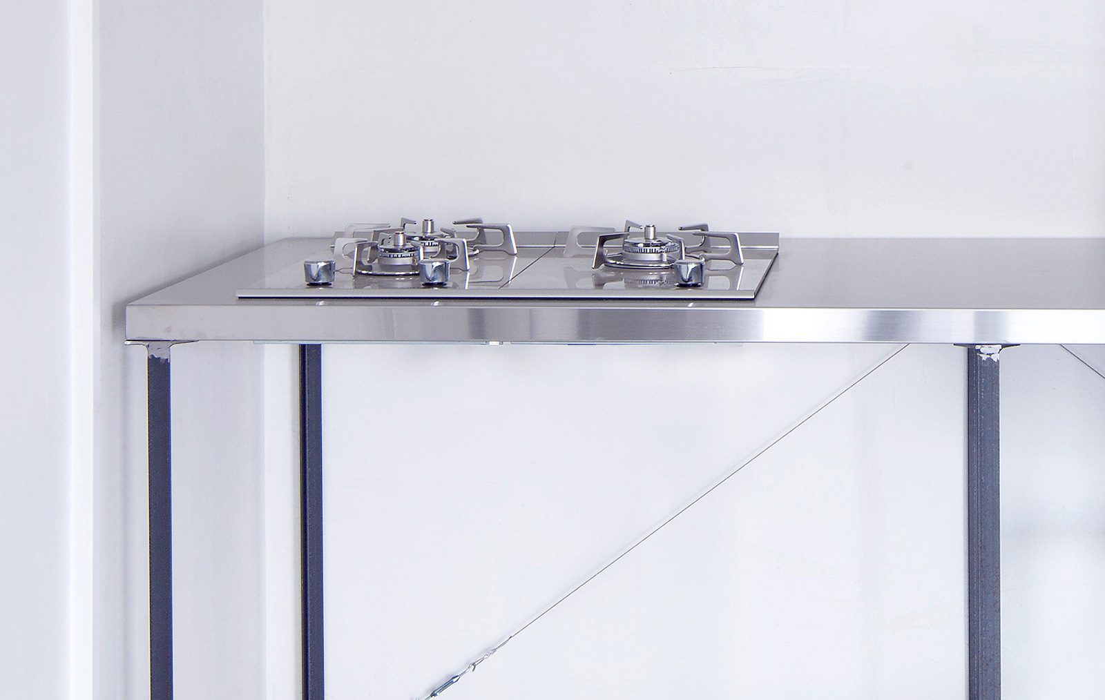 キッチンワークトップの脚部分をアイアンで制作しました。 L型アングル、C型チャンネルなど鋼材を組み合わせ、ワークトップ部分をしっかり支えています。 仕上げはワックスを施して落ち着いた質感になりました。 design/森大志郎 photo/中川周